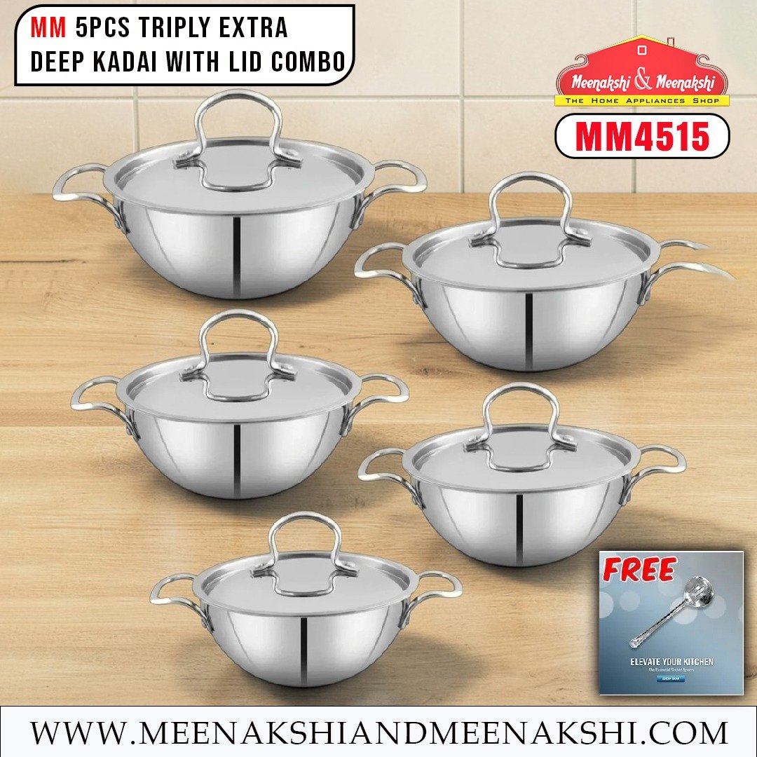 MM 5PCS Triply Extra Deep Kadai With Lid Combo MM4515