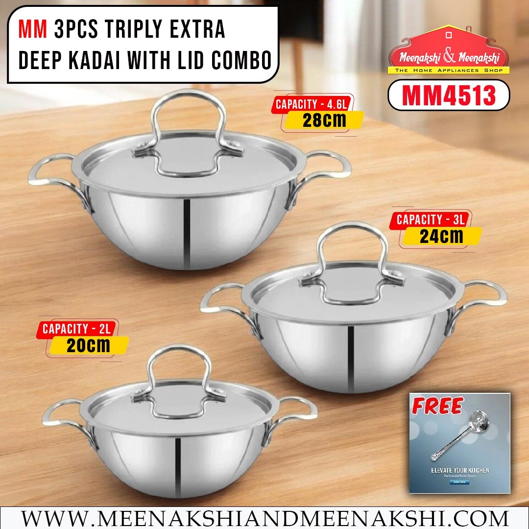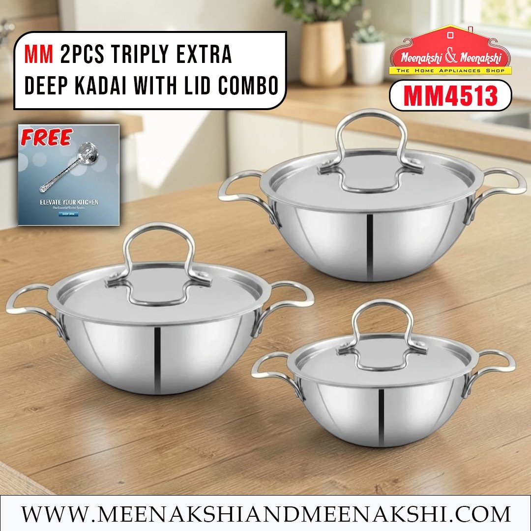 MM 3PCS Triply Extra Deep Kadai With Lid Combo MM4513