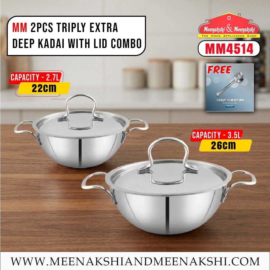 MM 2PCS Triply Extra Deep Kadai With Lid Combo MM4514