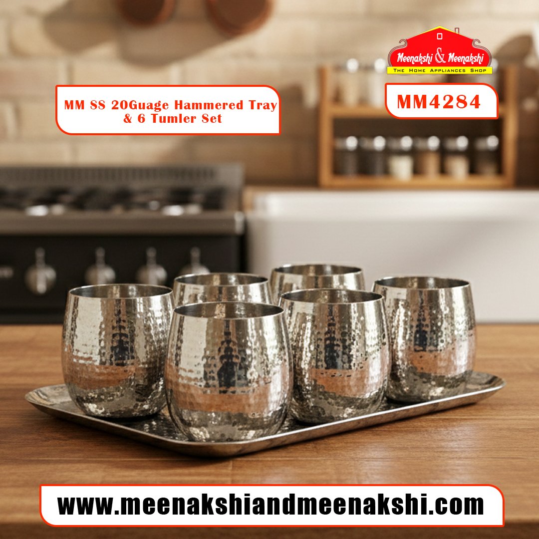 MM SS 20Guage Hammered Tray & 6 Tumler Set MM4284