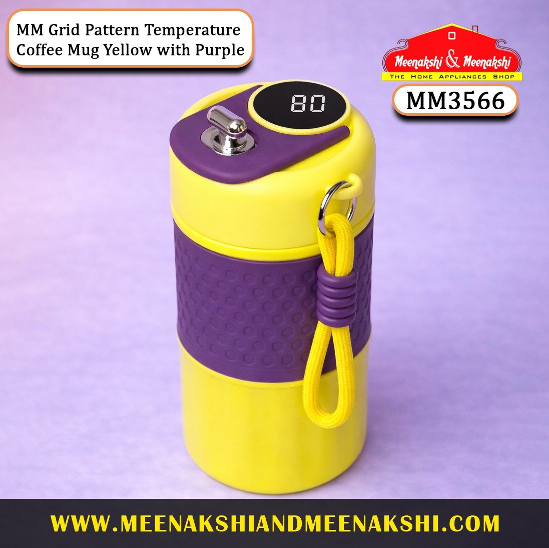 MM Grid Pattern Temperature Coffee Mug Yellow with Purp...