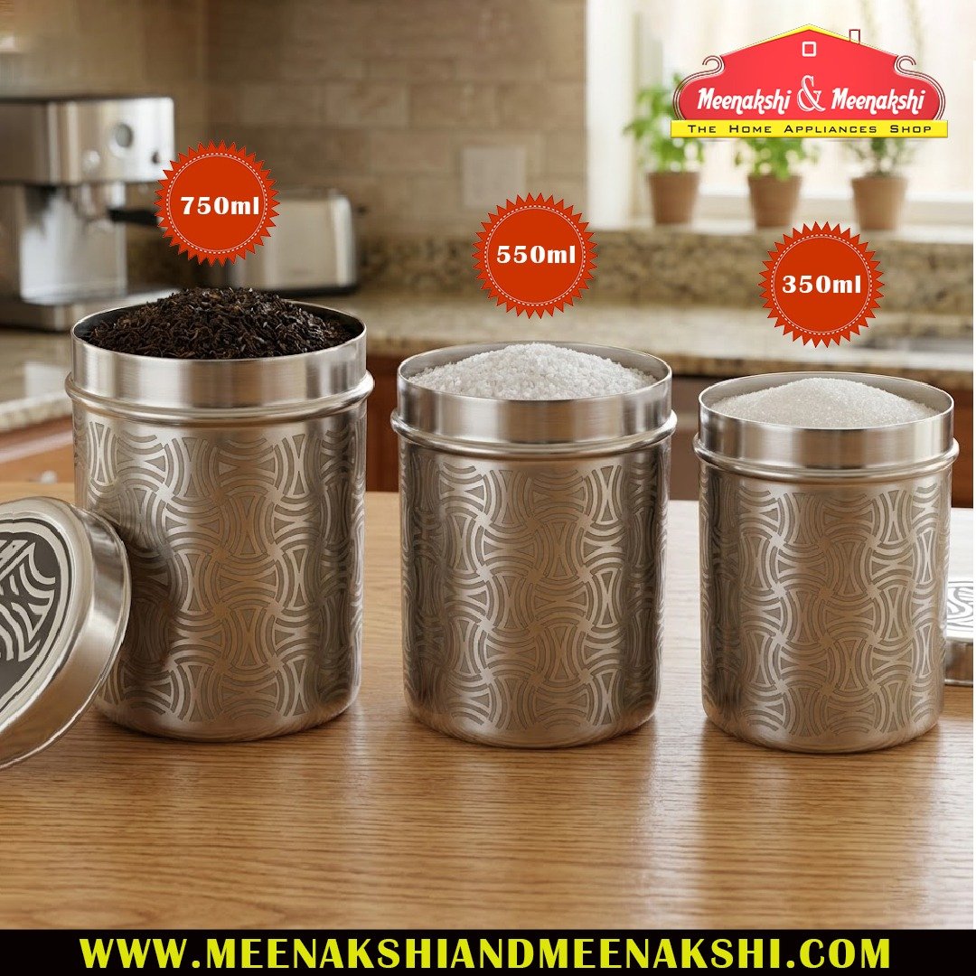 MM SS 3PCS Royal Tea Coffee Sugar Canister Arc Pattern MM4586