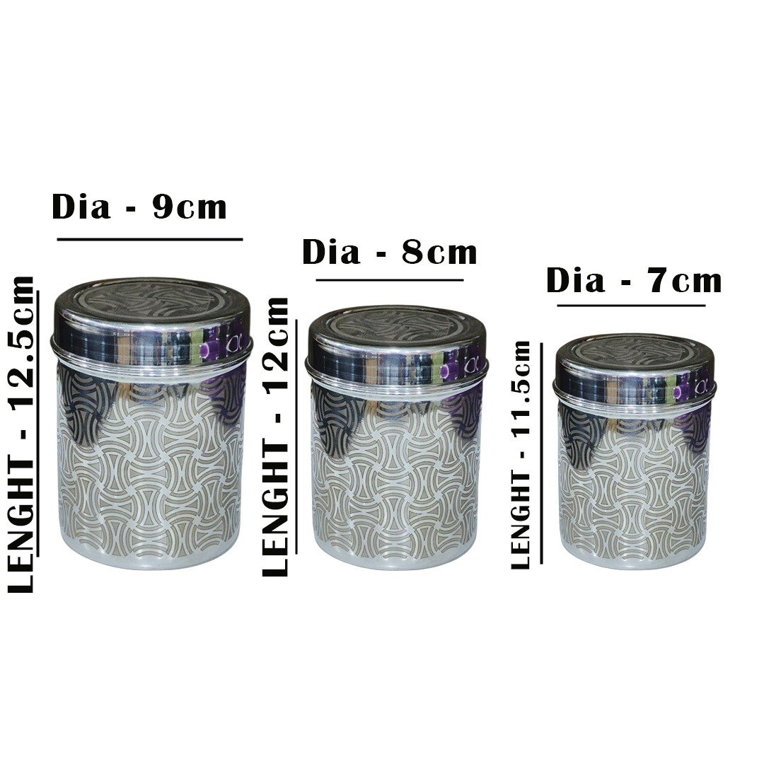 Sugar : Capacity - 750ml , Height - 12.5cm, Dia - 9cm, Weight - 210g.