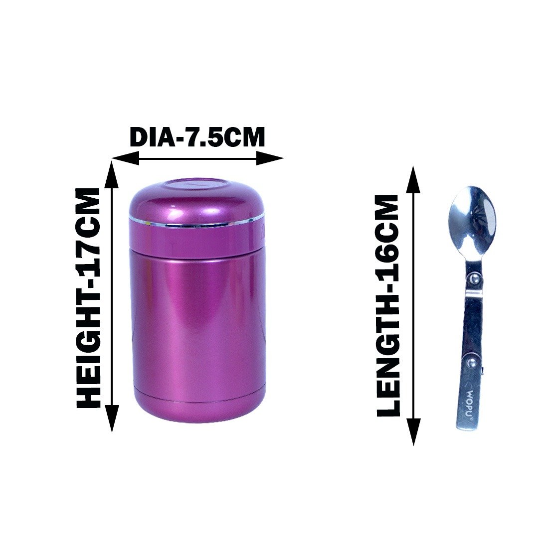 MM SS Food Jar With Foldable Steel Spoon 550ml Metalic Pink MM4130