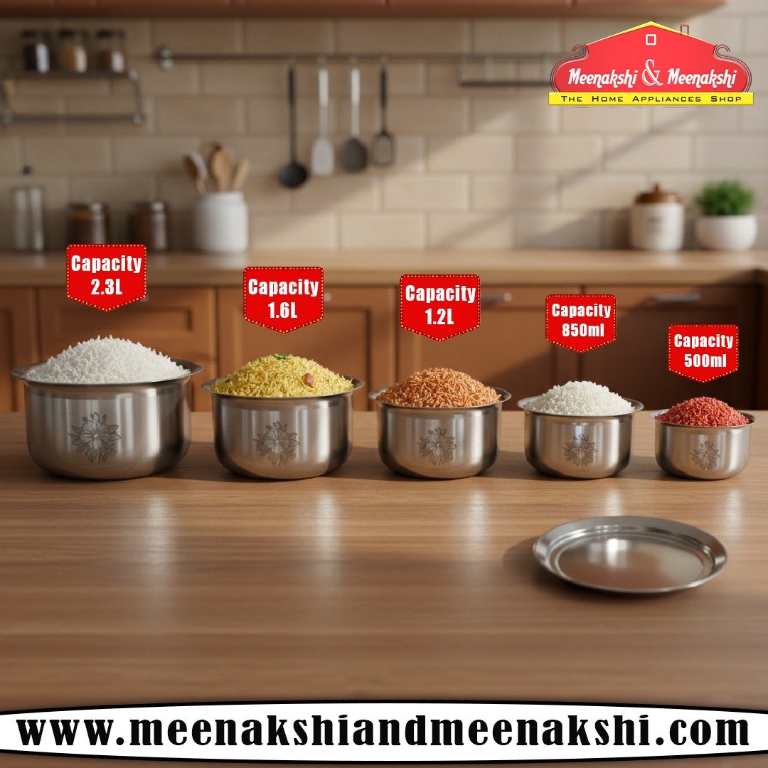 Tope No-5 : Capacity - 2.3L, Height - 11cm, Dia - 18cm, Weight - 685g.