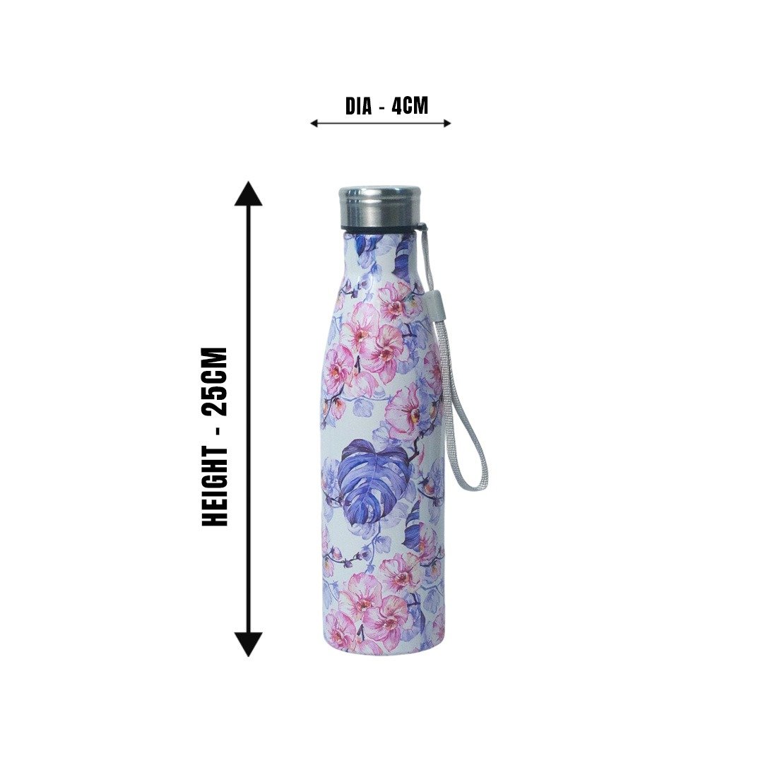 TAG HILLS Slim Printed Water Bottle White with Lavender 800ml MM3325