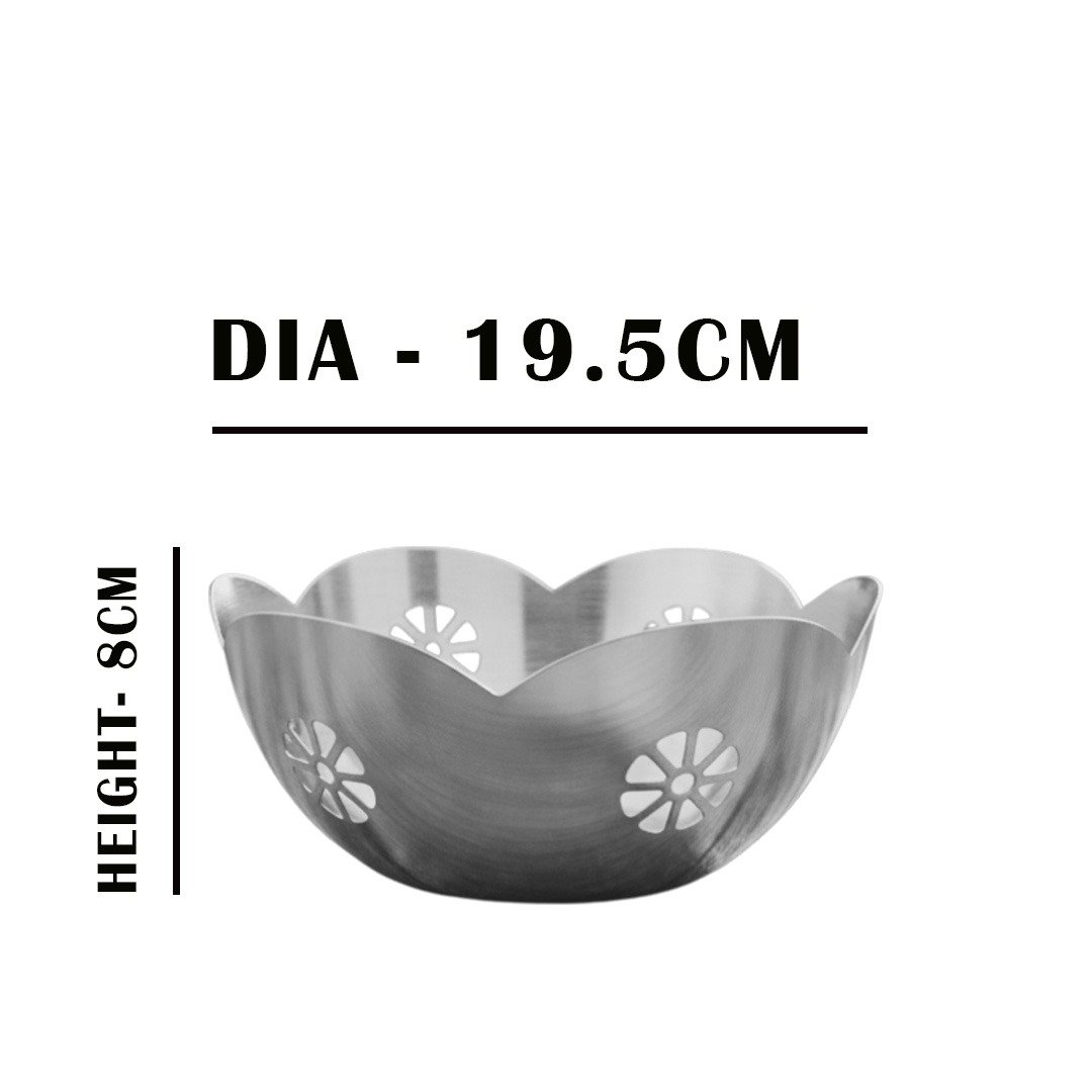 Fruit Basket Bowl: Height - 8cm, Dia - 19.5cm, Weight - 210G.