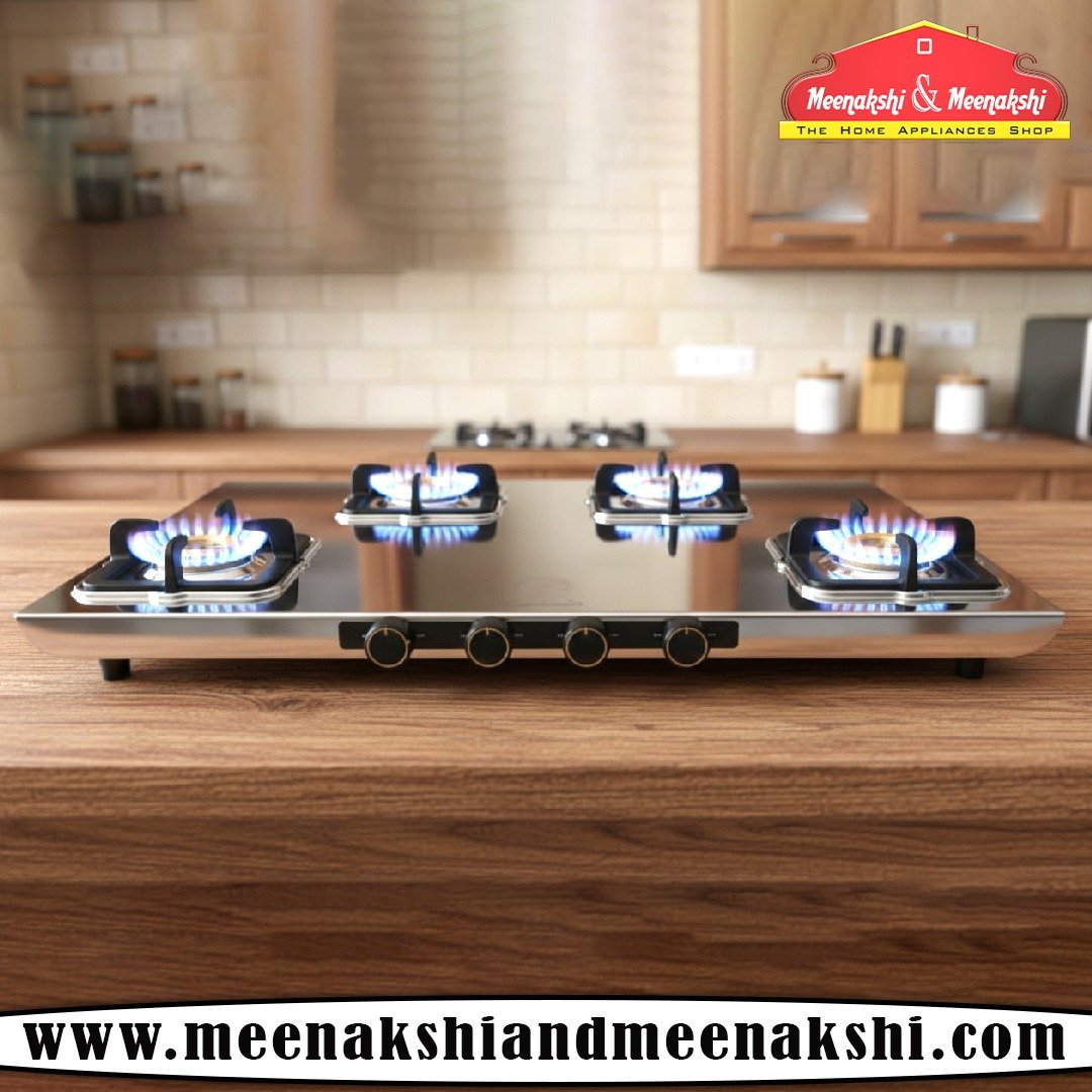 Wide spacing between burners for big vessels (biryani pot, dosa tawa, etc.).