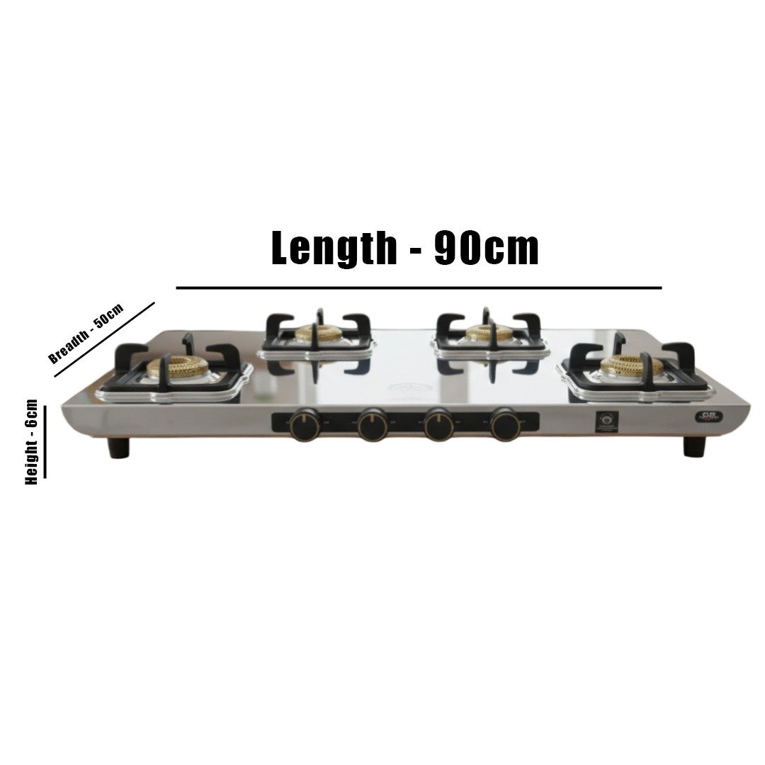 4 heavy-duty brass burners (likely 2 Jumbo + 1 Large + 1 Small for different cooking needs).