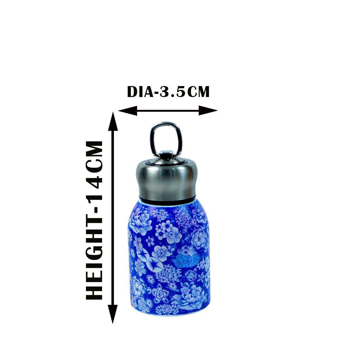 Leak Proof Vacuum Flask Blue with WhiteFloral 300ml MM4157