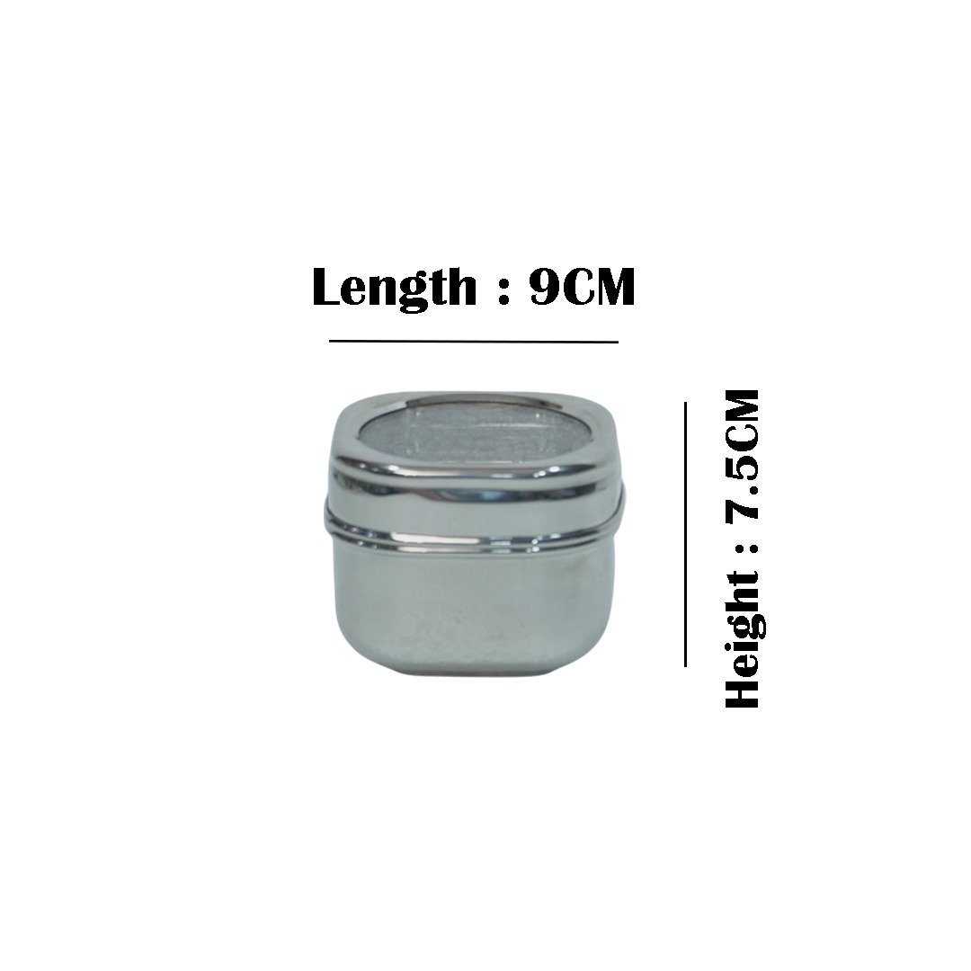 This stainless steel container is designed for durability and convenience. It features a clear glass lid that allows you to easily view contents without opening it. Ideal for storing spices, dry fruits, snacks, or small kitchen ingredients, its sleek and shiny finish adds a modern touch to any kitchen. The airtight seal helps keep contents fresh and protected from moisture.