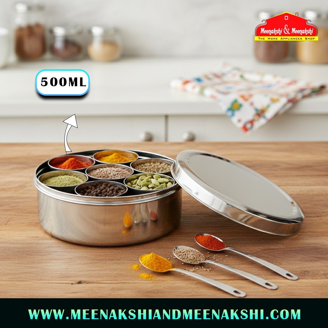 The design is compact and helps keep spices fresh and easily accessible in the kitchen.