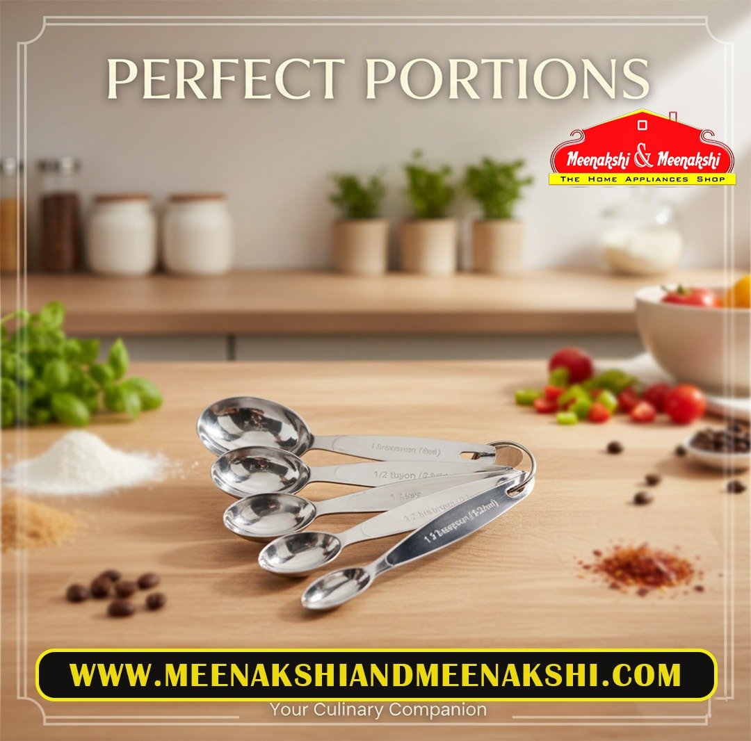 The set includes five standard sizes: 1/8 tsp, 1/4 tsp, 1/2 tsp, 1 tsp, and 1 tbsp.