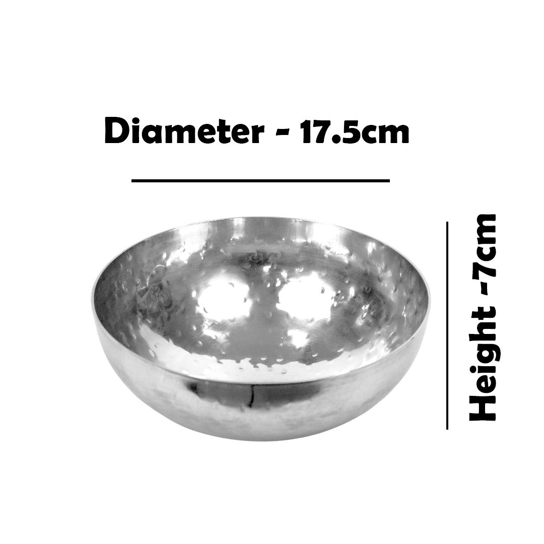 This Tasla combines elegance with utility. Crafted from food-grade stainless steel, it features a durable construction with a traditional hammered design, making it ideal for kneading dough, mixing ingredients, or serving large portions of food. Its wide surface and deep design offer great versatility for both domestic and commercial kitchens.