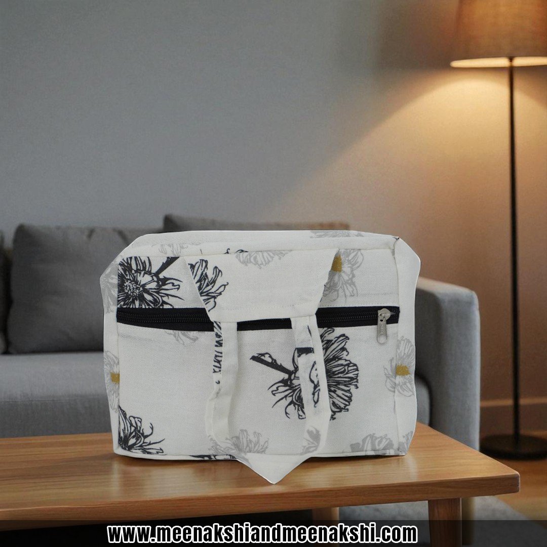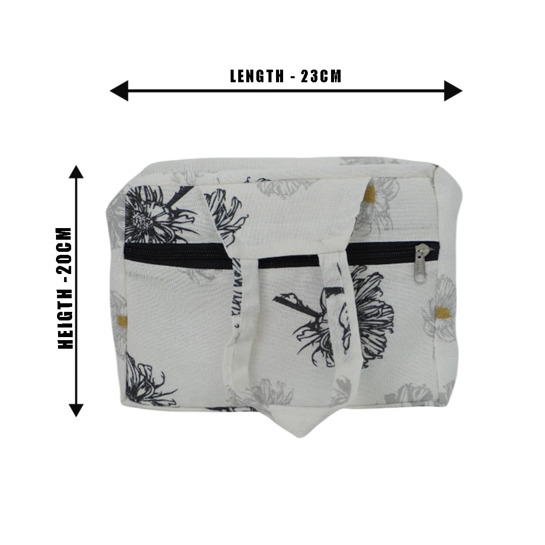 MM Quilted 2Zip HandBag White with Floral MM3609
