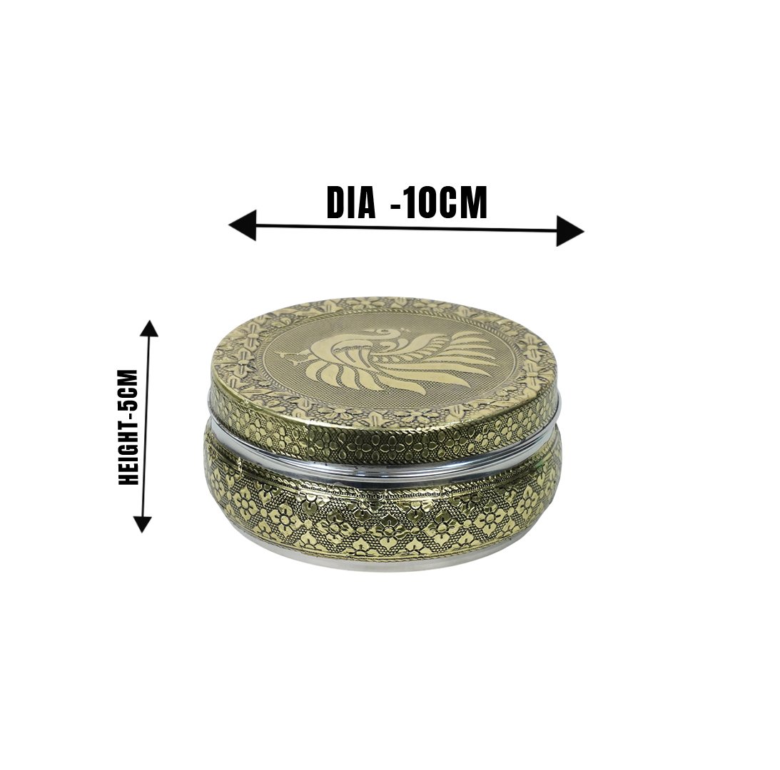 Peacock steel flat storage container / puri dabba made from the finest stainless-steel material which ensures strength, quality and durability. This flat storage container is rust proof and hygienic.