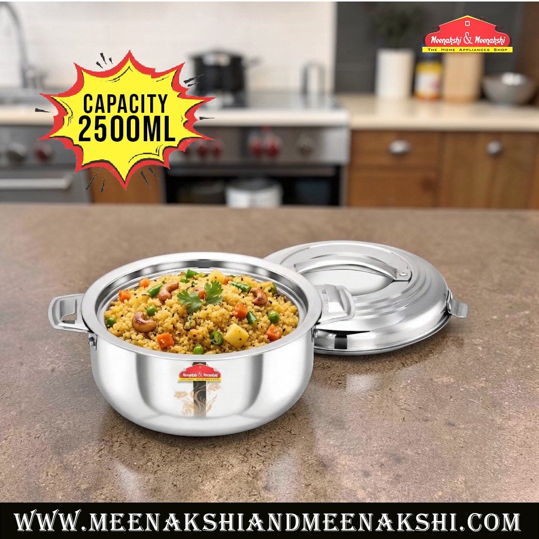 Storing hot food like rice, chapati, curry, and biryani.