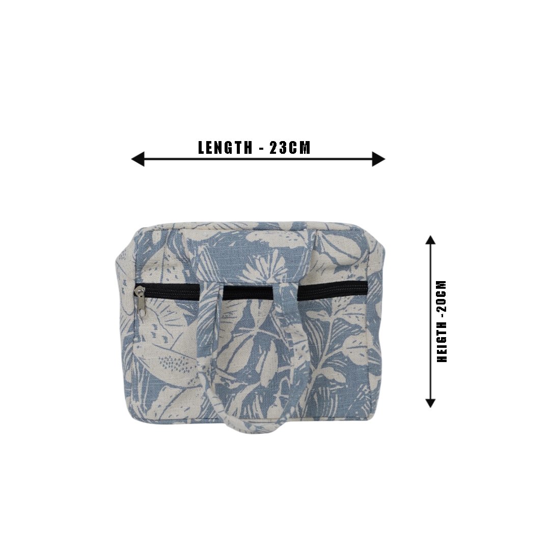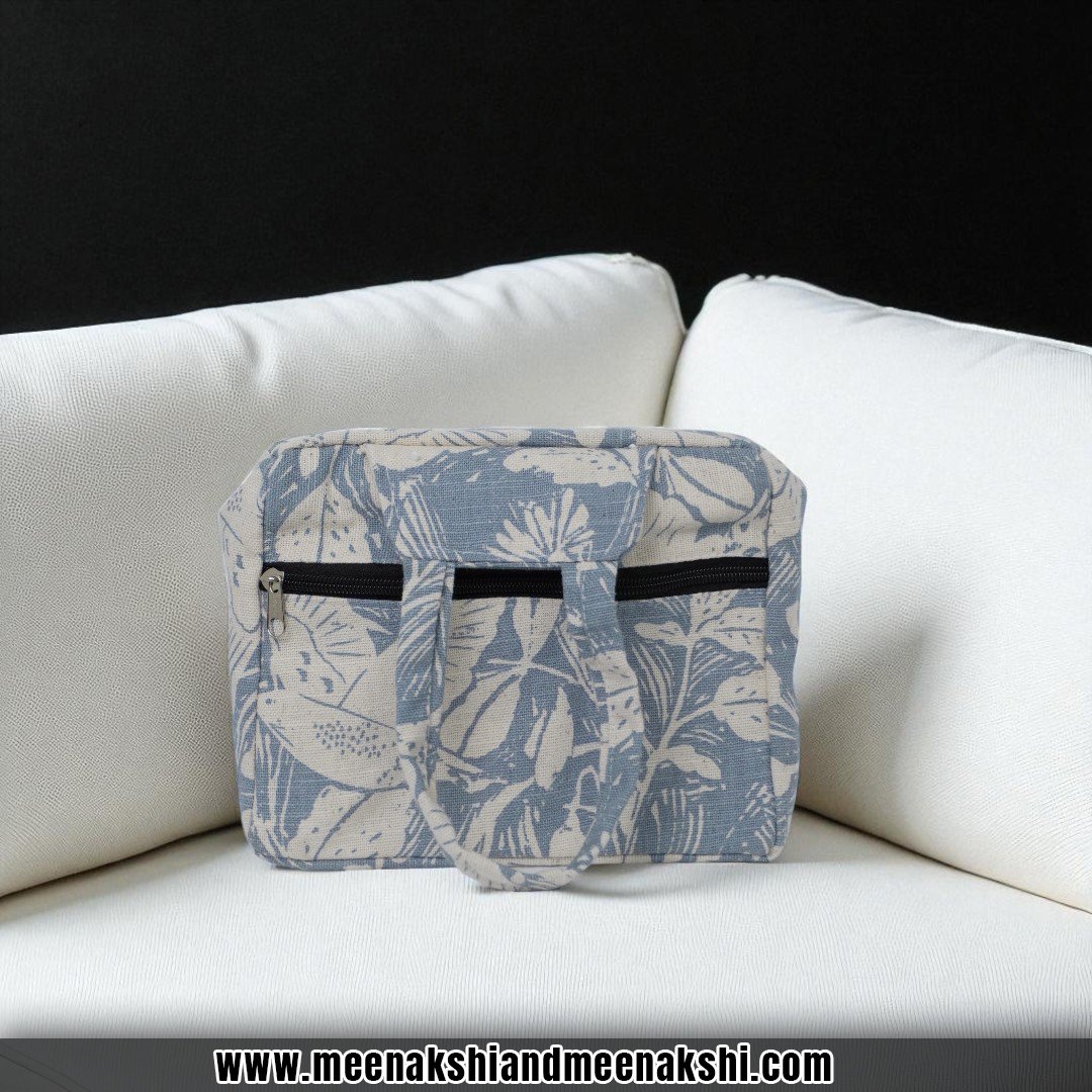 MM Quilted 2Zip HandBag DustyBlue with Plants MM3605