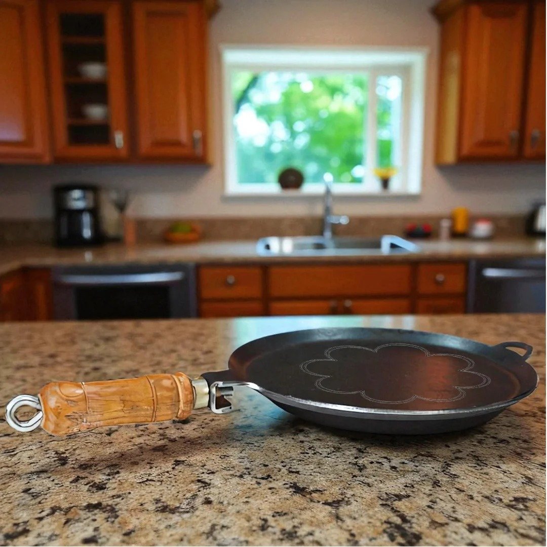 Round, flat cooking surface ideal for making dosa, chapati, paratha, uttapam, and similar flatbreads.