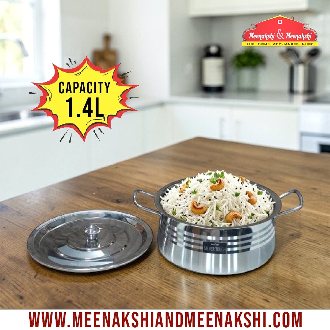 This elegant stainless steel pot features a modern “Silver Touch” mirror finish with stylish horizontal patterns, giving it a premium and attractive look for any kitchen.