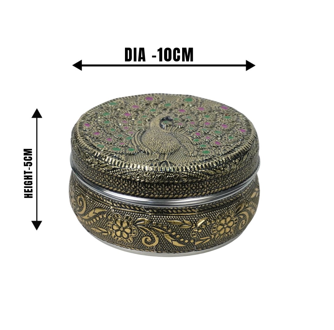 Meenakari steel flat storage container / puri dabba made from the finest stainless-steel material which ensures strength, quality and durability. This flat storage container is rust proof and hygienic.