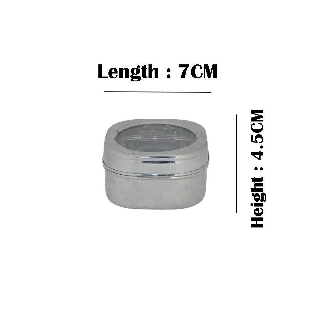 This stainless steel container is designed for durability and convenience. It features a clear glass lid that allows you to easily view contents without opening it. Ideal for storing spices, dry fruits, snacks, or small kitchen ingredients, its sleek and shiny finish adds a modern touch to any kitchen. The airtight seal helps keep contents fresh and protected from moisture.