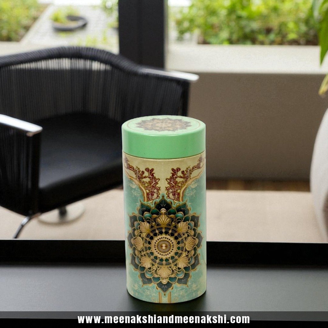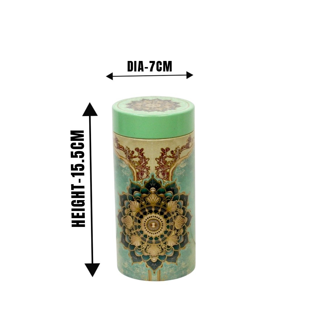 Printed Tin Can 73X150 mm Aqua Green with Peacock MM3698