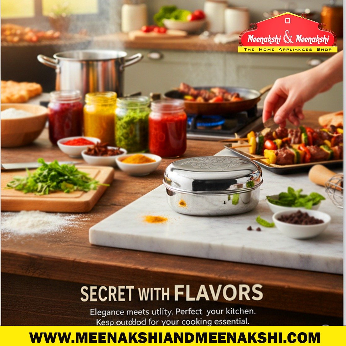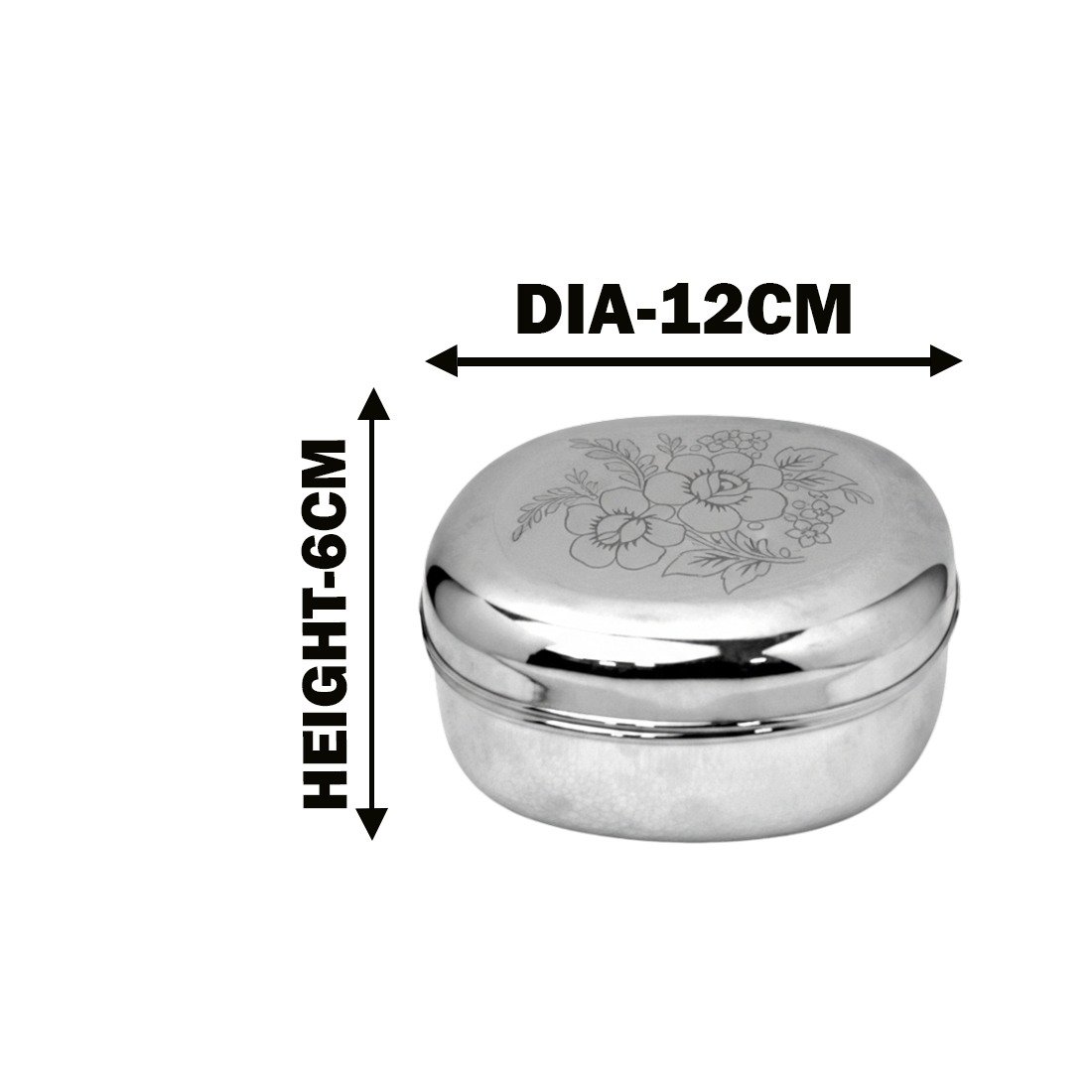 This beautifully polished stainless steel container combines functionality with subtle elegance. The smooth, mirror-like finish and delicate etched floral design on the lid make it both a practical and decorative item. Its sturdy build ensures long-lasting use while maintaining a refined appearance.