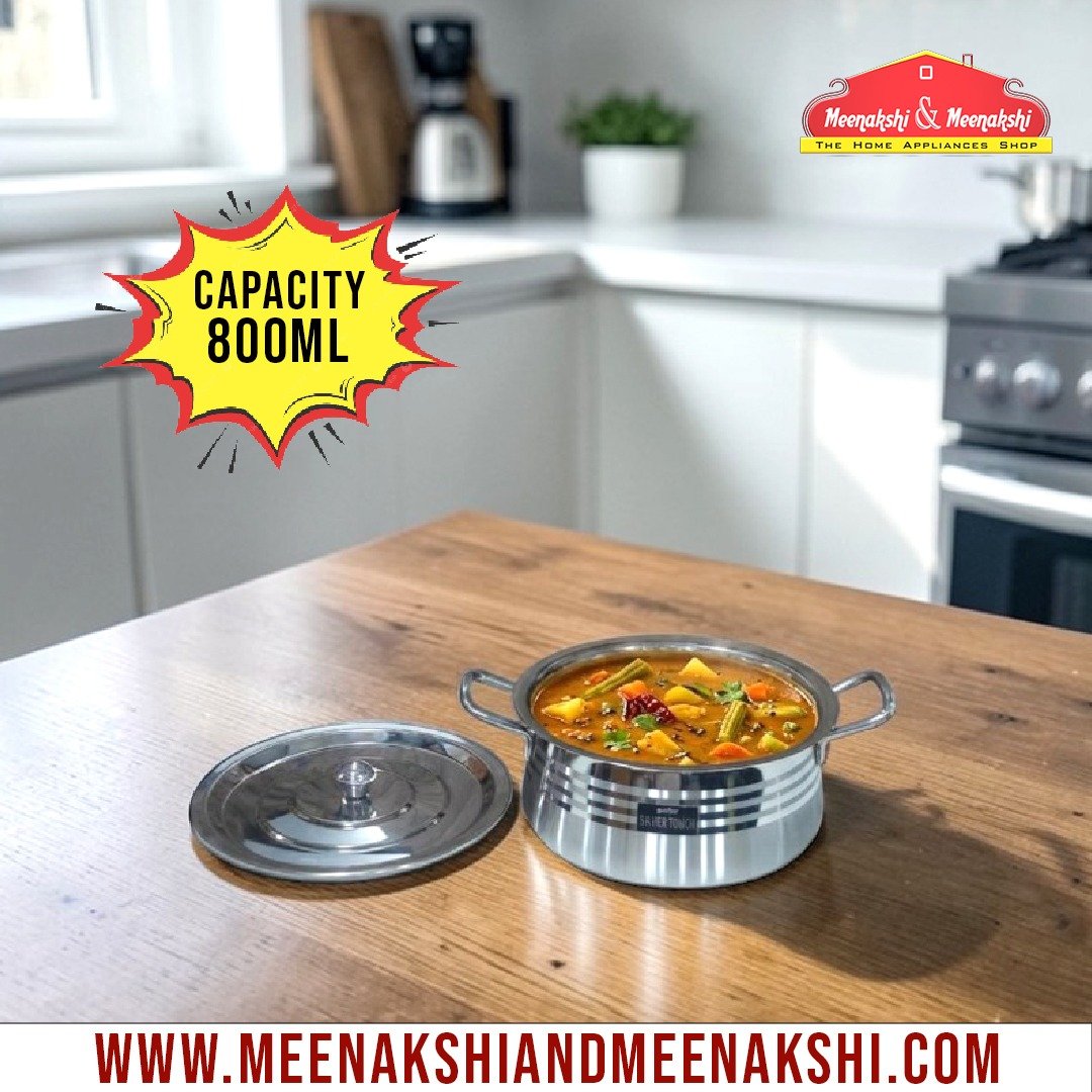 This elegant stainless steel pot features a modern “Silver Touch” mirror finish with stylish horizontal patterns, giving it a premium and attractive look for any kitchen.