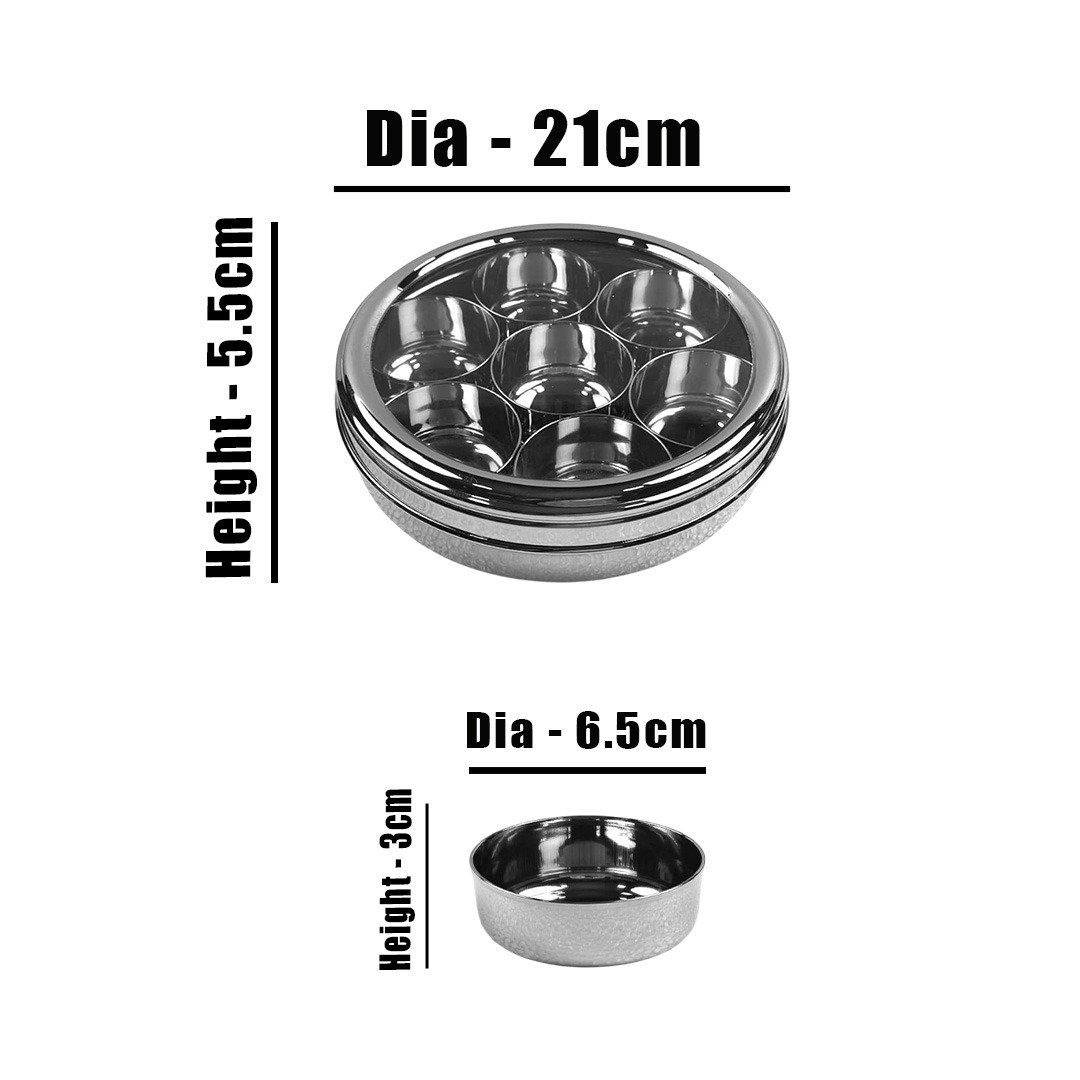 Masala Box : Height - 5.5cm, Dia - 21cm,