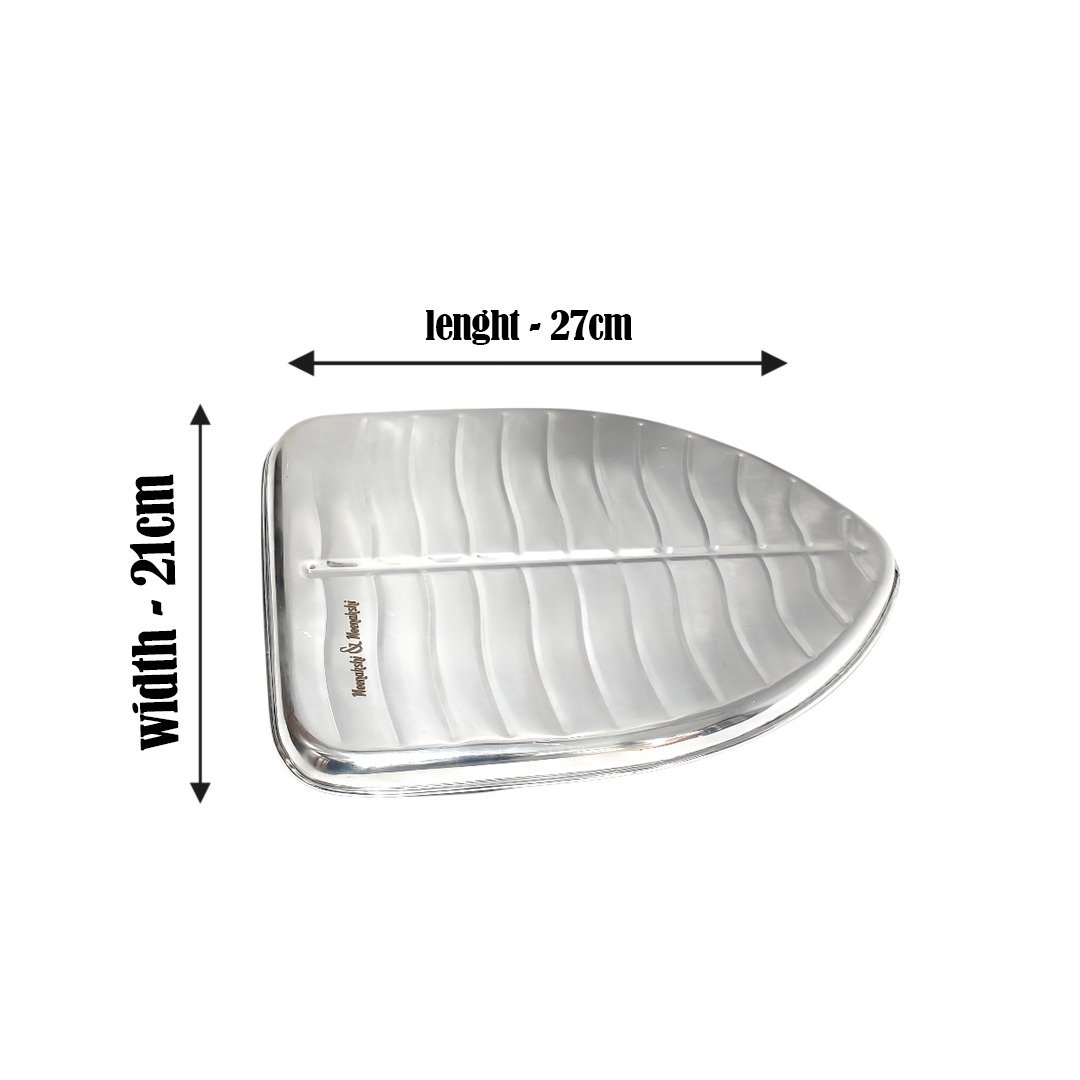 This Stainless Steel leaf shaped Banana plates is ideally used for serving plate, platters. It can also be used in pooja rooms as Aarthi plates, Kumkum holder plates, flowers.