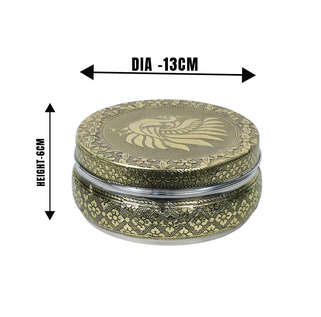 Peacock steel flat storage container / puri dabba made from the finest stainless-steel material which ensures strength, quality and durability. This flat storage container is rust proof and hygienic.