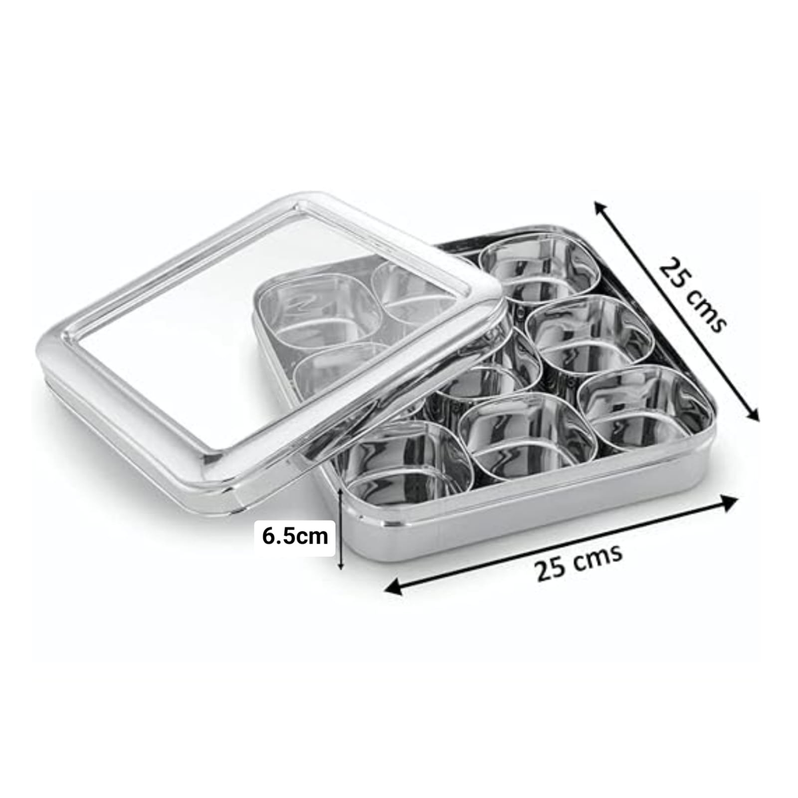 Stainless Steel Square See-Through 9 Cups Spices Box MM2027
