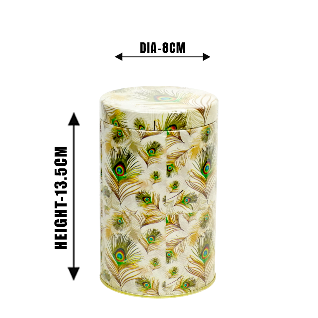 10PCS Printed Tin Can 80X135 mm Light Beige with Peacock Feather MM3810