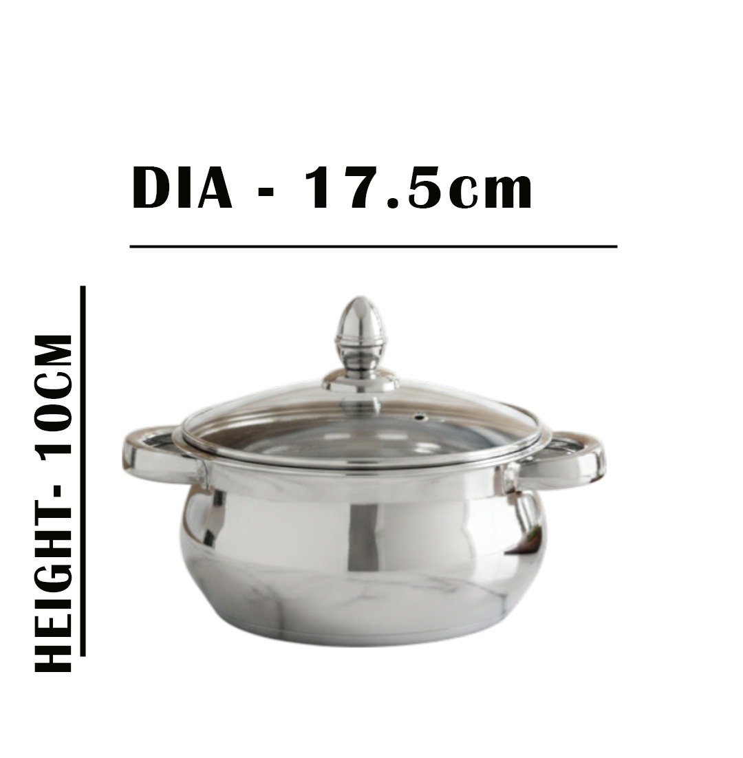 Belly Pot : Capacity - 2L, Height - 10cm, Dia - 17.5cm, Weight - 715g.