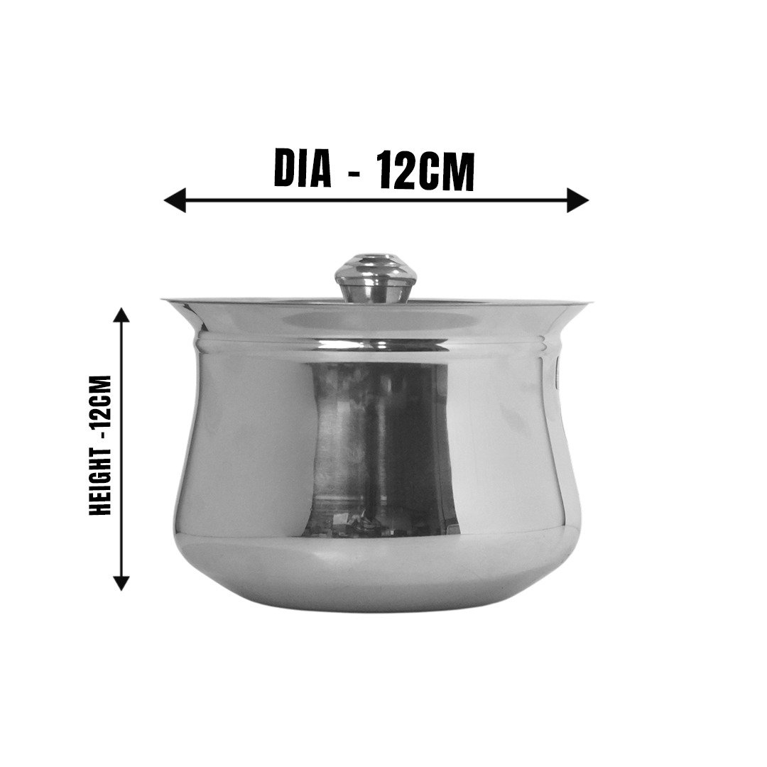 This light weight Belly shape tope set is designed with flat bottom base that enables it to use on Induction Cooktop and Gas Cooktop as well.