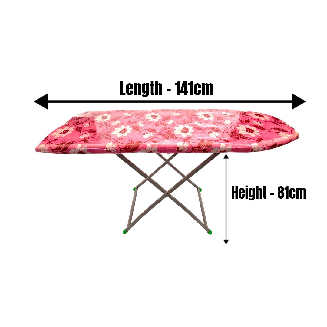 Wide and soft-padded ironing surface with a colorful, printed cover for better fabric grip and heat resistance.