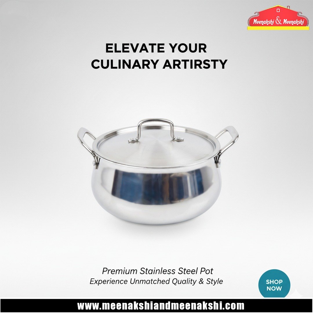 Matching stainless steel lid with a loop handle.