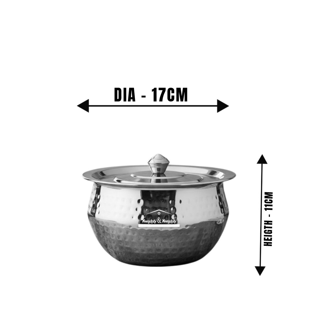 MM SS 20G 3PCS Pongal Dish Hammered Tope With Lid 1L, 1.7L & 2.8L MM3738