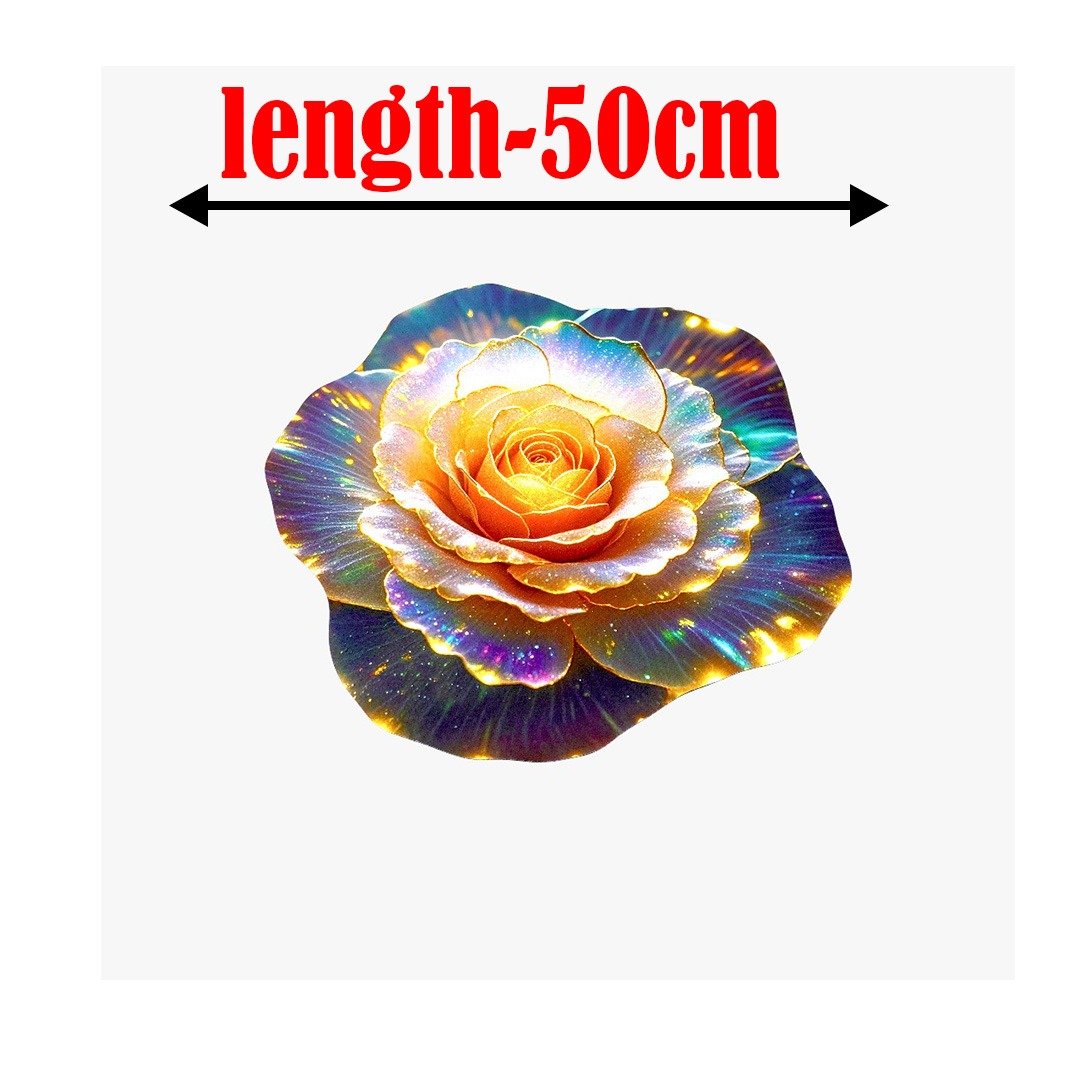 This is a Medium, realistic Golden Rose flower décor piece made from printed cardboard or thick craft paper. It features detailed petal artwork with a gradient of blue and purple tones that gives it a 3D look. It is ideal for using as wall decoration for parties, birthdays, weddings, stage backgrounds, photo booths or home décor. The lightweight design makes it easy to hang or place anywhere for a beautiful floral display.