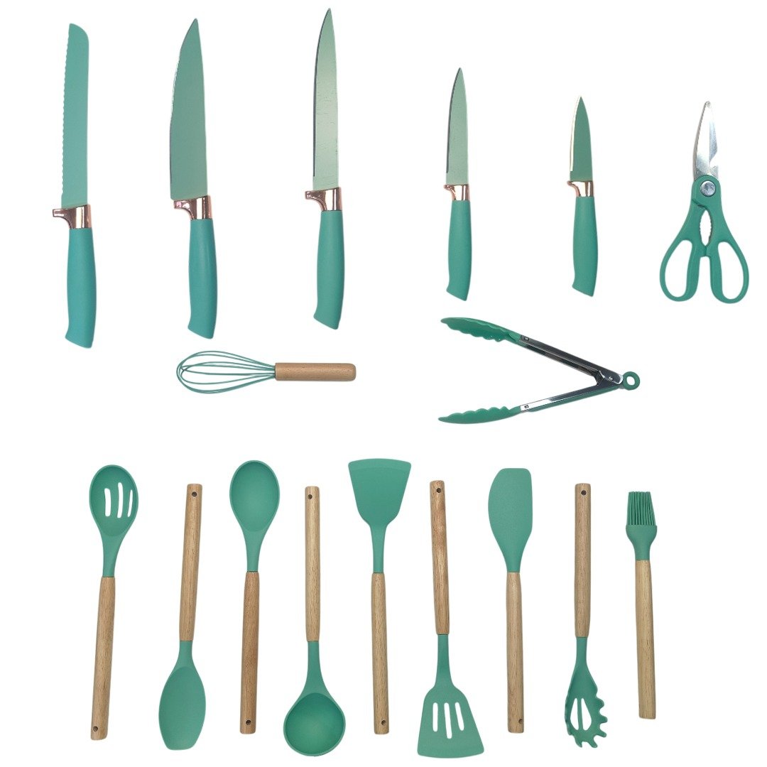 MM Silicone Kitchen Utensils Spatula Cooking And Knife Green 19PCS Set MM3161