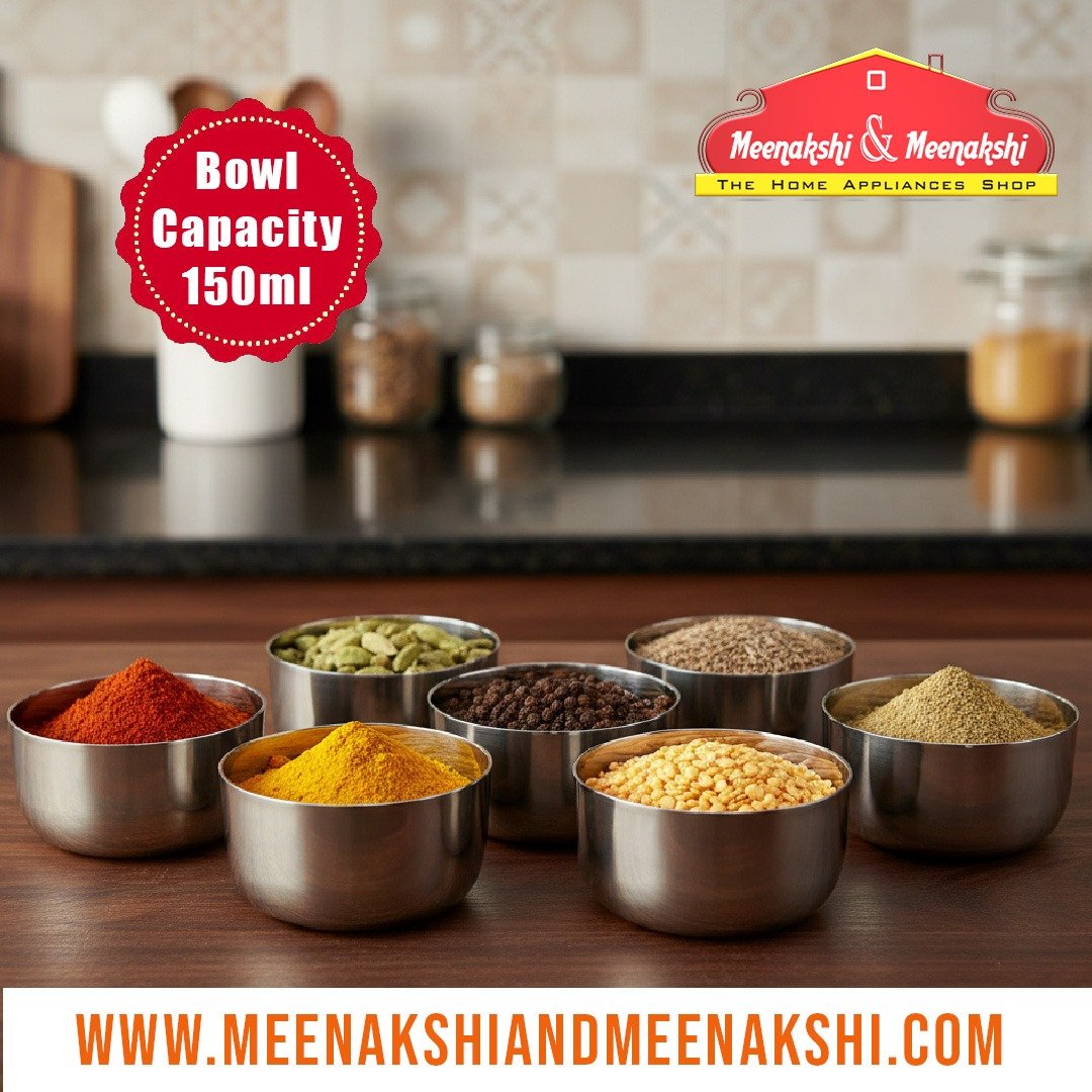 Features a traditional masala dabba design with seven compartments, perfect for organizing a variety of spices and herbs.