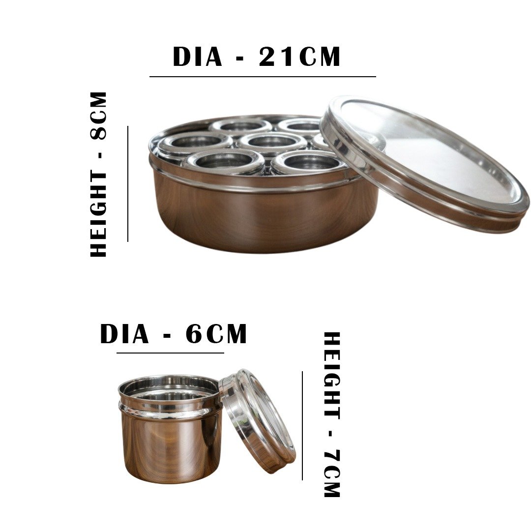 Masala Box : Height - 8cm, Dia - 21cm,