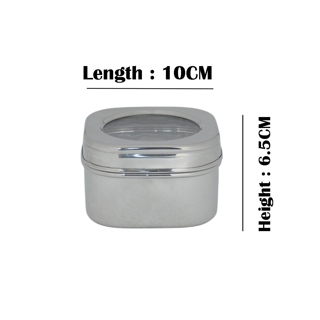 This stainless steel container is designed for durability and convenience. It features a clear glass lid that allows you to easily view contents without opening it. Ideal for storing spices, dry fruits, snacks, or small kitchen ingredients, its sleek and shiny finish adds a modern touch to any kitchen. The airtight seal helps keep contents fresh and protected from moisture.