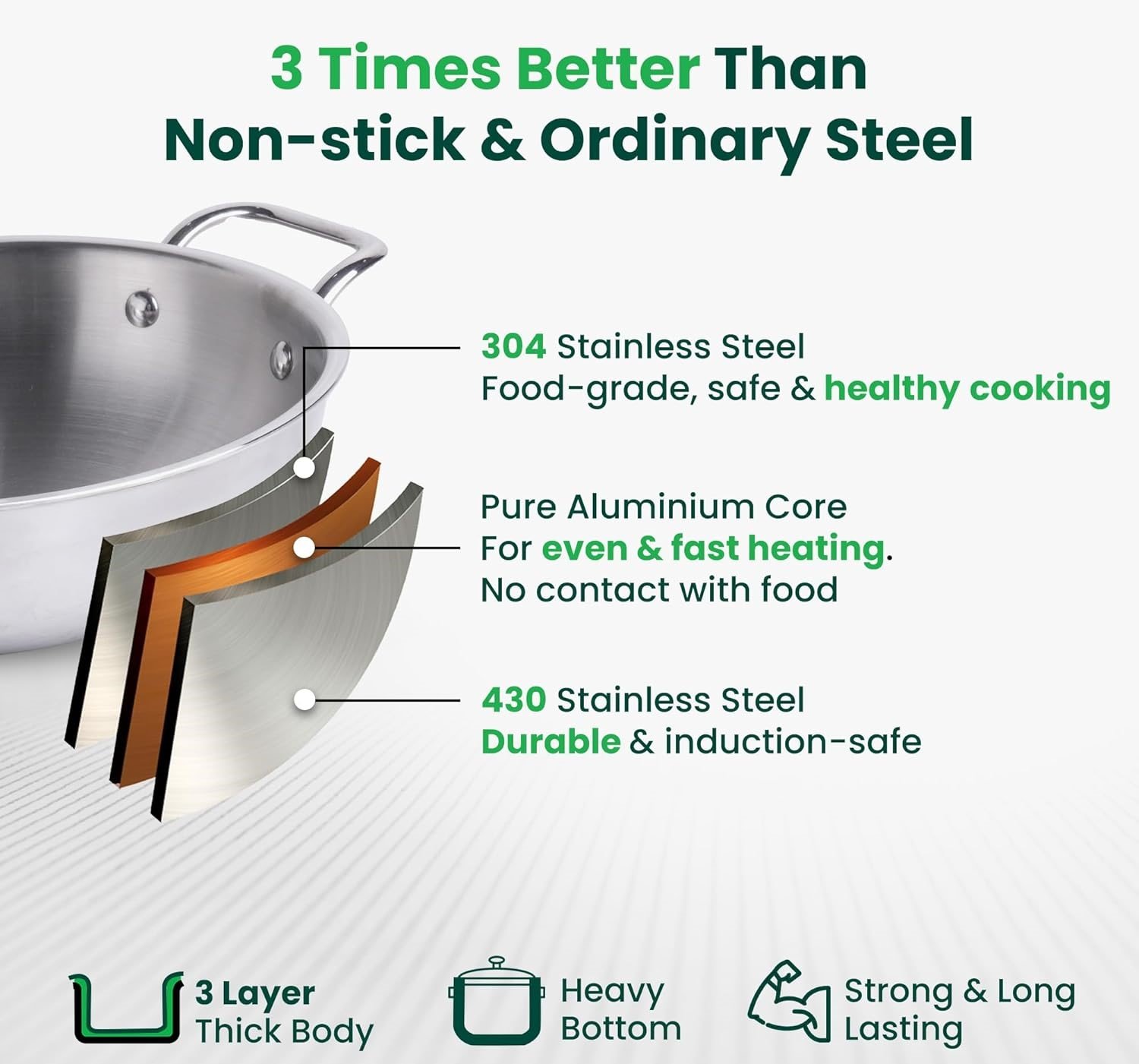 HEALTHY & DELICIOUS MEALS: The tri-ply construction requires less oil, so you can enjoy healthier meals without compromising on flavor.