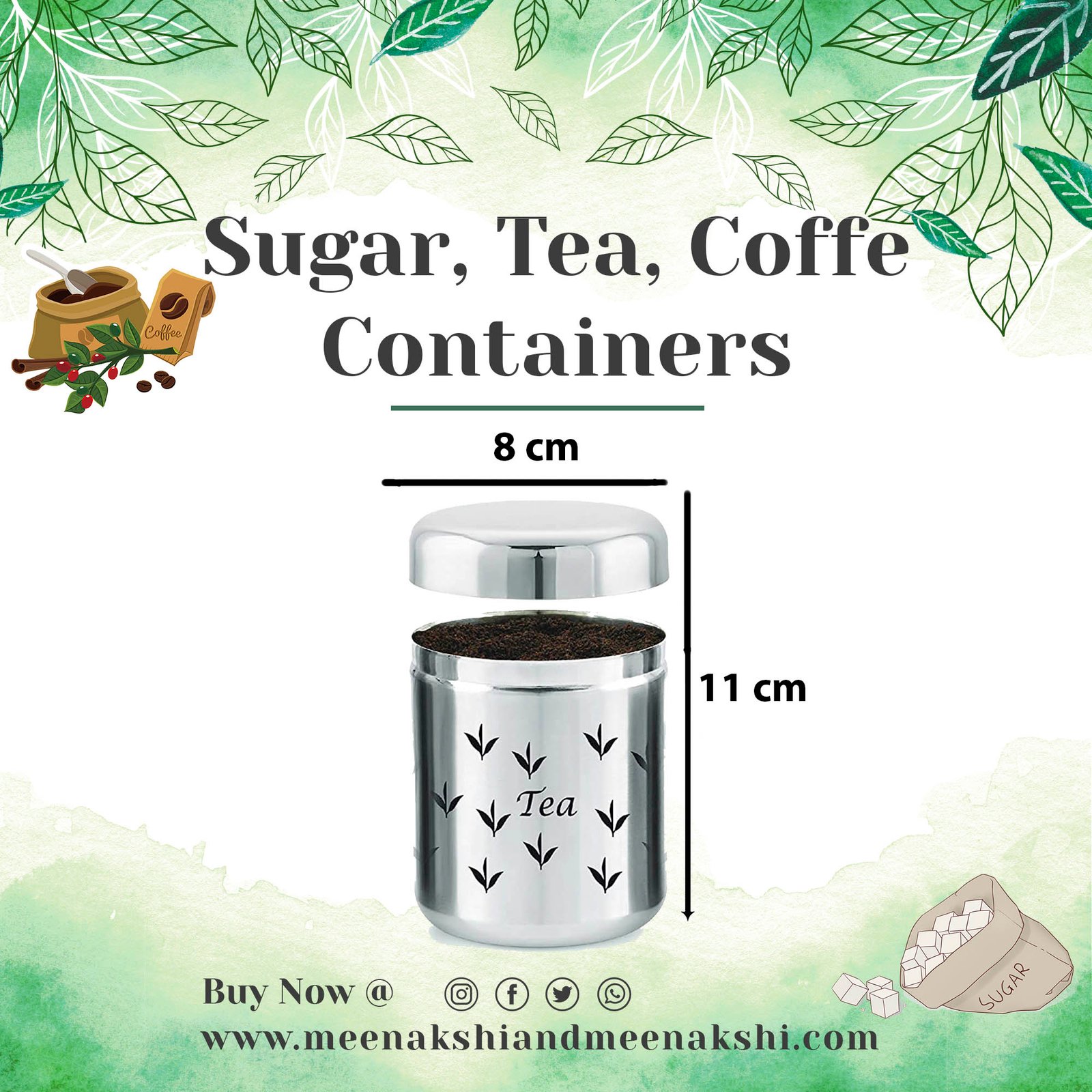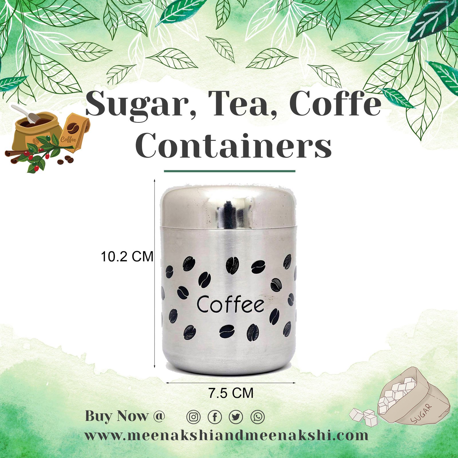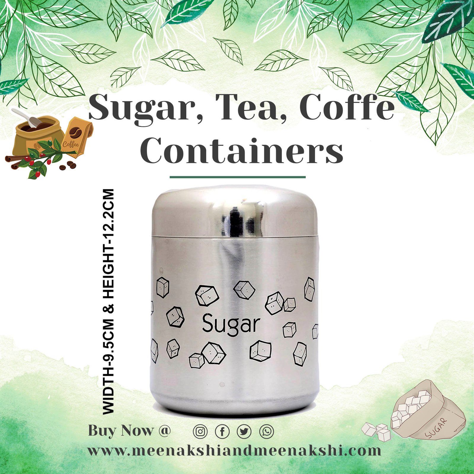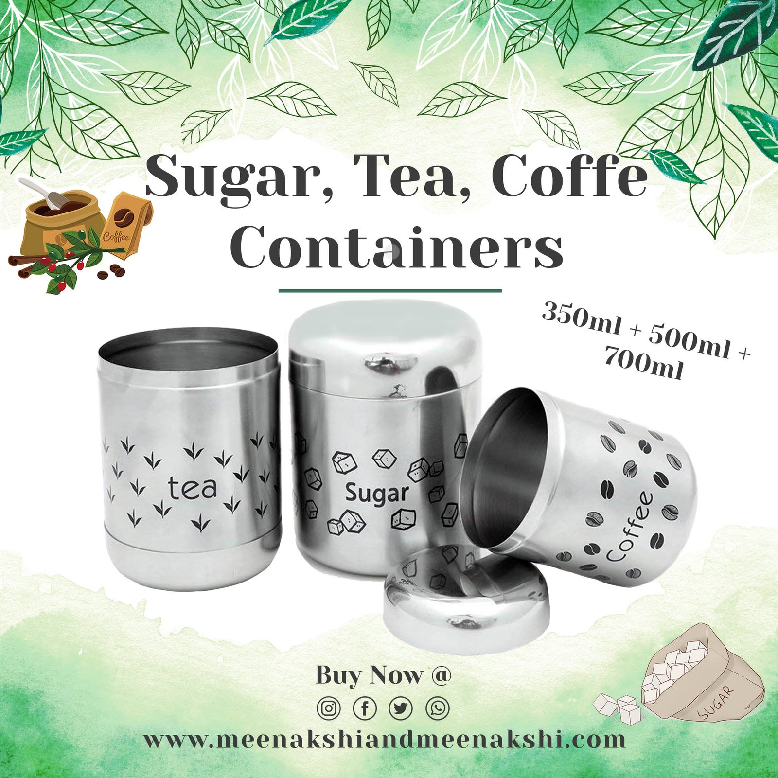 Package contents:-1 Sugar Container, 1 Tea Container, 1 Coffee