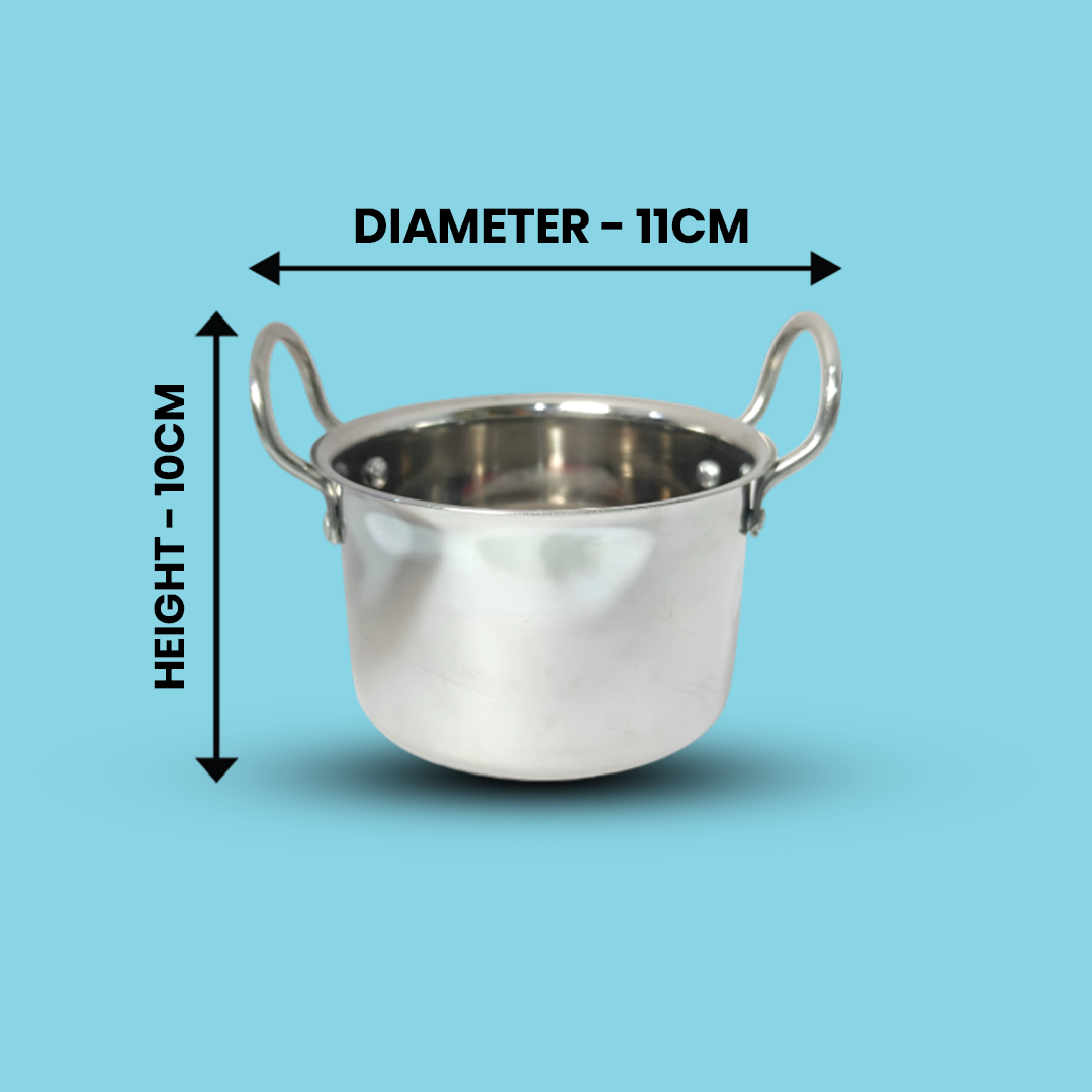 This Mini Handle Top combines elegance with practicality. Crafted from high-quality stainless steel, it features a polished mirror finish and two ergonomic handles for easy handling. Its compact size makes it ideal for individual servings, especially in restaurants or special home dining experiences. Perfect for dals, sabzis, gravies, or desserts.