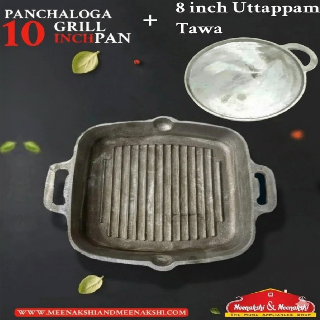 MM Panchaloga Grill Pan 10 inch + 8 Inch Uttappam Tawa Combo MM2354