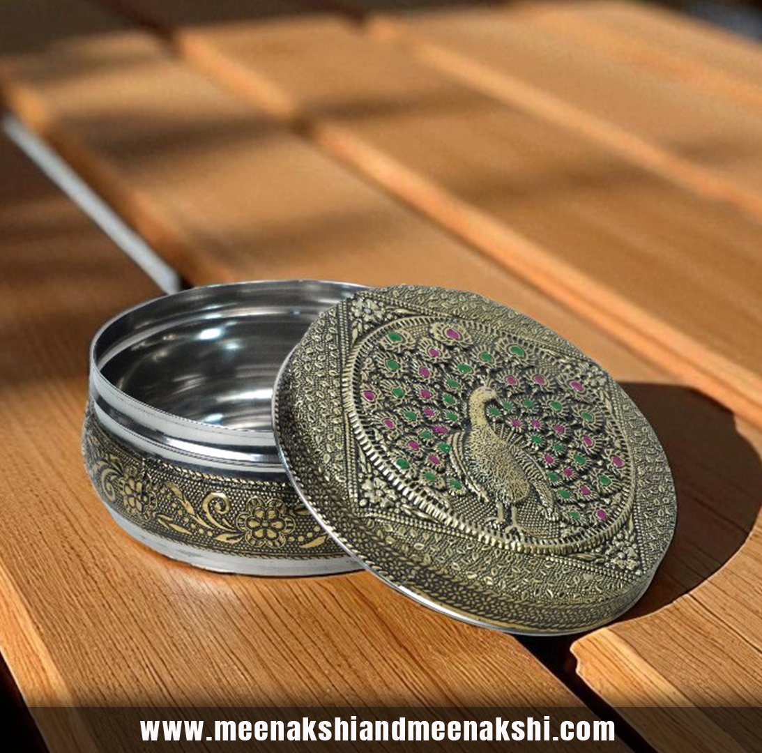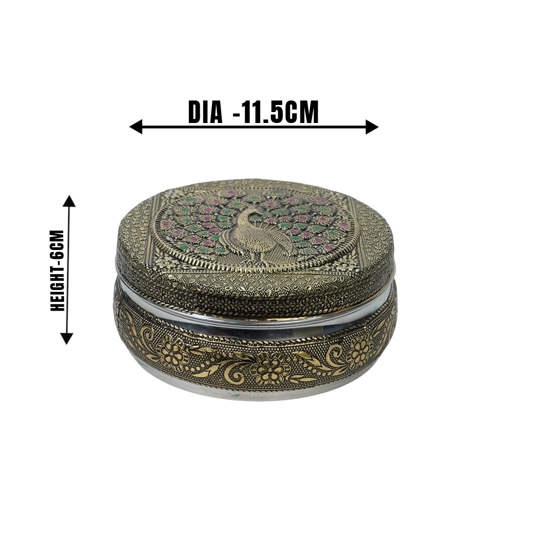 Meenakari steel flat storage container / puri dabba made from the finest stainless-steel material which ensures strength, quality and durability. This flat storage container is rust proof and hygienic.