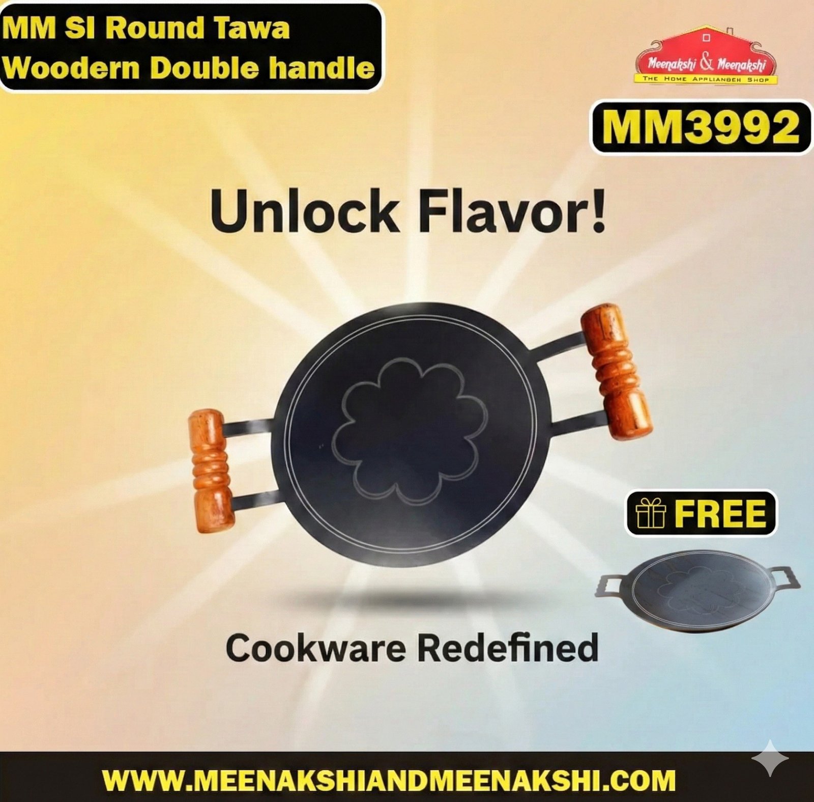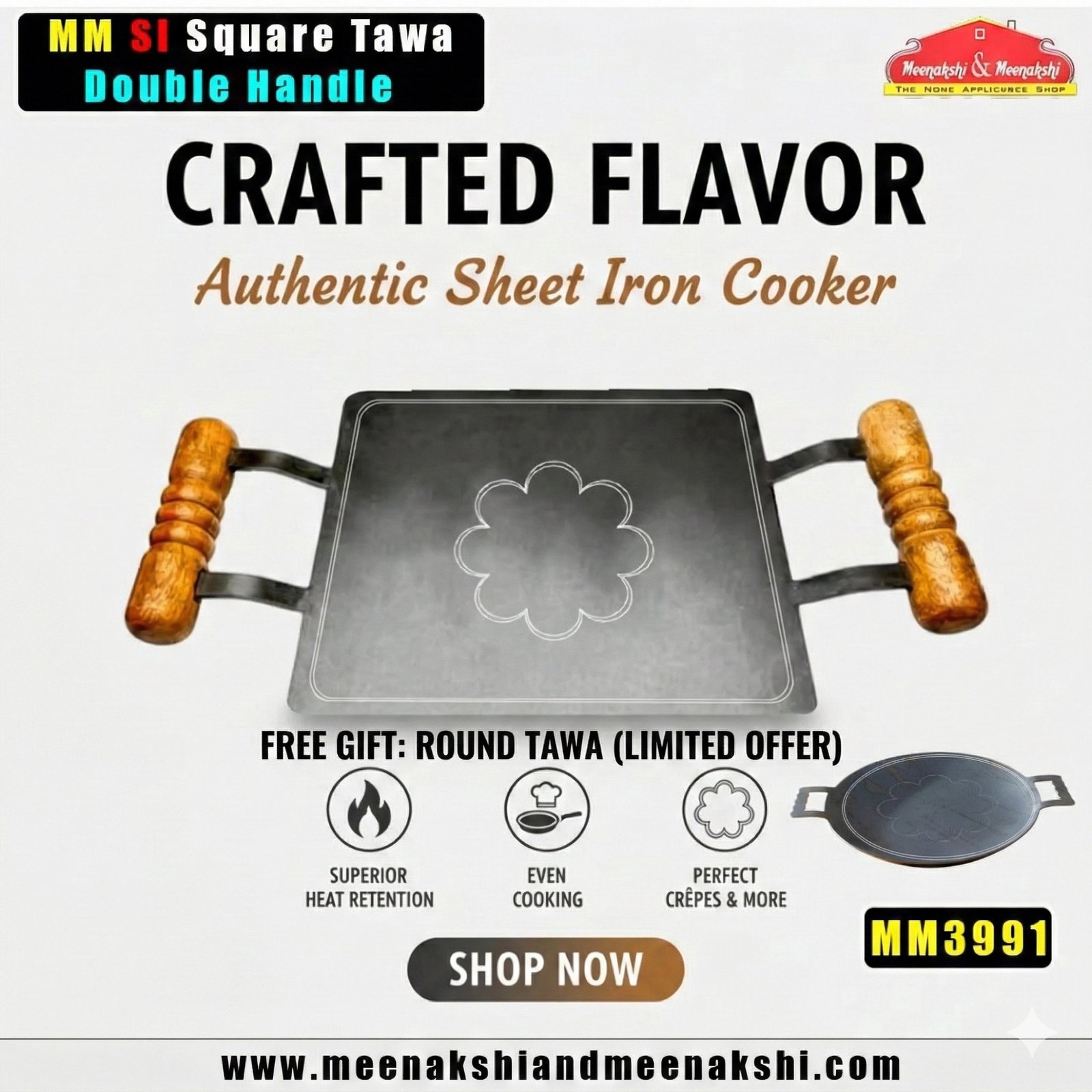 MM SI Square Tawa Woodern Double Handle 30cm MM3991